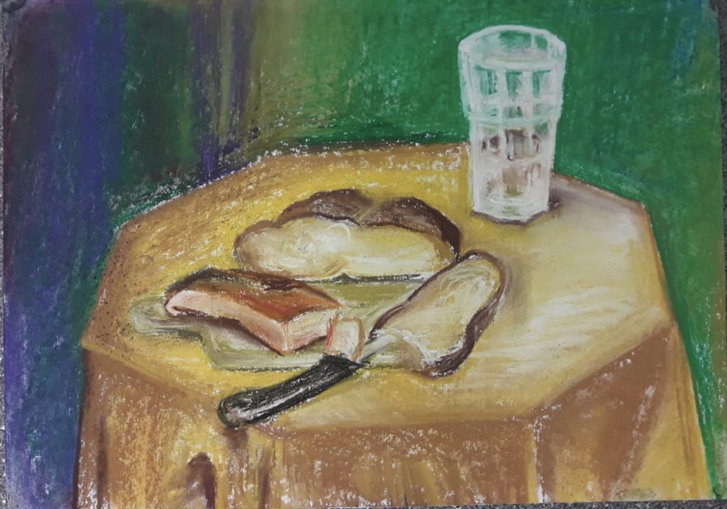 Sobota – ubytování, oběd, zimní krajina pastelem v plenéru pohraničí, večeře, malba aktu pastelem.